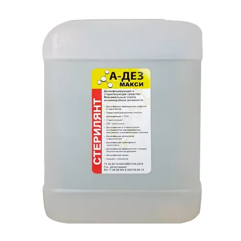 - в качестве действующих веществ содержит глутаровый альдегид 10 %, алкилдиметилбензиламмоний хлорид и дидецилдиметиламмоний хлорид (суммарно) – 14 %. Кроме того, в состав средства входят моющий и обезжиривающий компонент (неионогенный ПАВ), активаторы формулы, дезодорирующий компонент – для связывания посторонних запахов, отдушка, вода дистиллированная или вода деминерализованная (подготовленная), ингибиторы коррозии – для предотвращения коррозии инструментов из металлов, включая углеродистые стали и сплавы, сплавов титана и цветных металлов (латунь, медь)