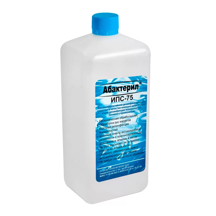 изопропиловый спирт – 75 %, алкилдиметилбензиламмоний хлорид и дидецилдиметиламмоний хлорид – 0,2 % (суммарно), увлажняющие и ухаживающие за кожей компоненты, а также функциональные добавки.Средство «Абактерил-ИПС-75» обладает: