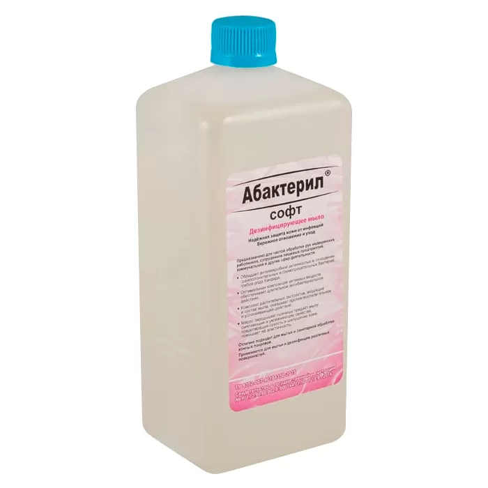 Дезинфицирующее жидкое мыло «Абактерил-софт» представляет собой готовую к применению прозрачную гелеобразную жидкость от бесцветной до светло-желтого цвета со слабым специфическим запахом или запахом применяемой отдушки. Допускается слабая опалесценция.