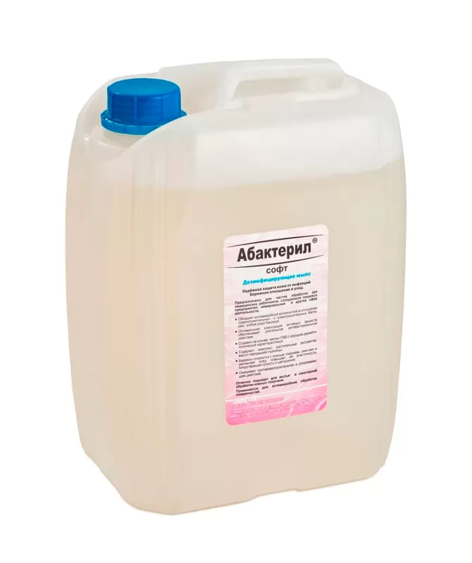 Дезинфицирующее жидкое мыло «Абактерил-софт» представляет собой готовую к применению прозрачную гелеобразную жидкость от бесцветной до светло-желтого цвета со слабым специфическим запахом или запахом применяемой отдушки. Допускается слабая опалесценция.