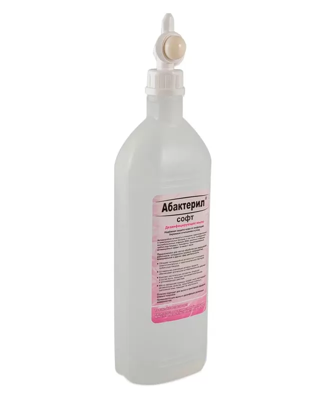 Дезинфицирующее жидкое мыло «Абактерил-софт» представляет собой готовую к применению прозрачную гелеобразную жидкость от бесцветной до светло-желтого цвета со слабым специфическим запахом или запахом применяемой отдушки. Допускается слабая опалесценция.