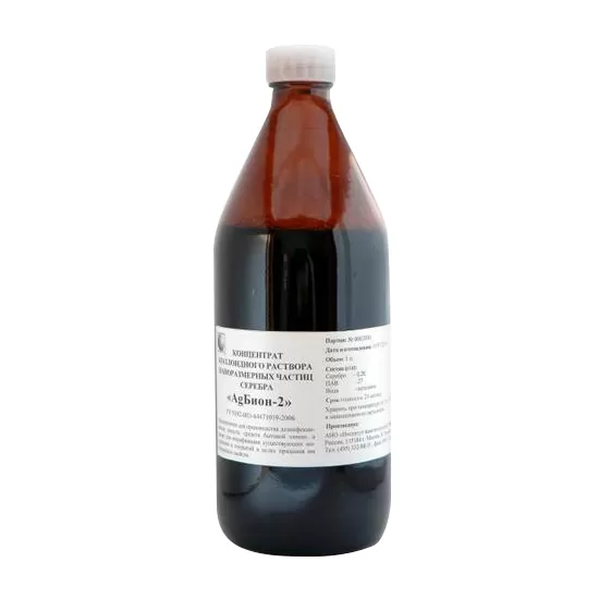 - в качестве действующего вещества содержит наноразмерные частицы серебра (средний размер 10-12 нм),