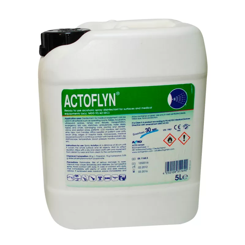 - в качестве действующих веществ содержит 50% 1-пропанола, 10% 2-пропанола, 0,05% дидецилметилксиэтиламмония пропионат (ЧАС).