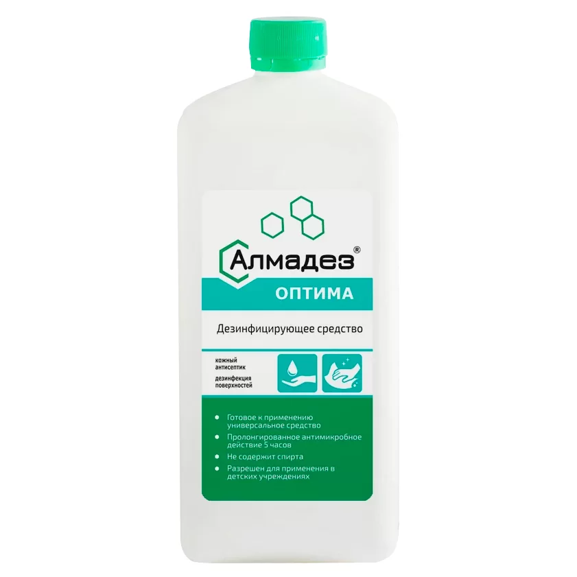 - Средство Алмадез-оптима – это готовый к применению бесспиртовой кожный антисептик. Представляет собой бесцветный прозрачный водный раствор с запахом отдушки.