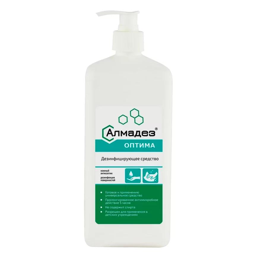 - Средство Алмадез-оптима – это готовый к применению бесспиртовой кожный антисептик. Представляет собой бесцветный прозрачный водный раствор с запахом отдушки.