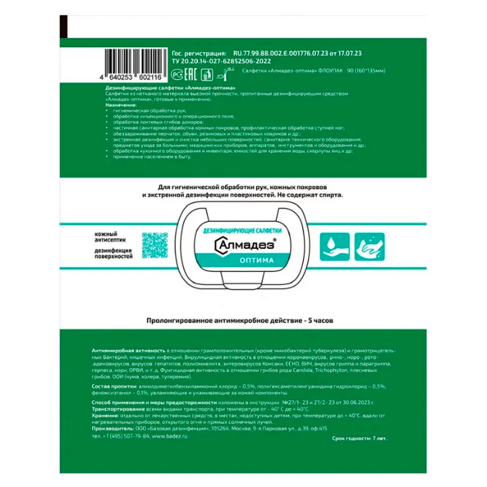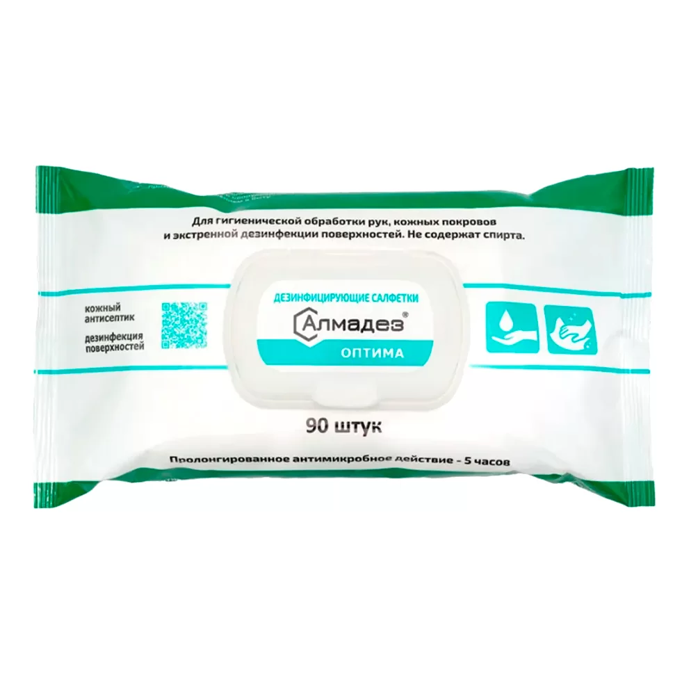 - Салфетки выполнены из нетканого материала и равномерно пропитаны дезинфицирующим средством "Алмадез Оптима".
