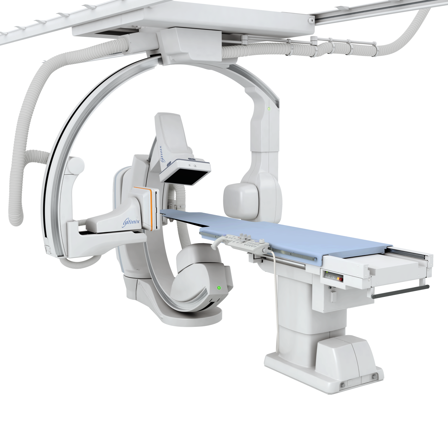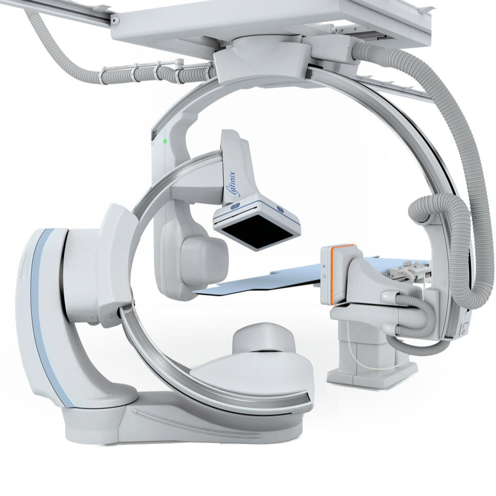 - Продуманная конструкция рабочего пространства обеспечивает лучший доступ к пациенту и вспомогательному оборудованию, позволяет использовать оборудование для сердечных и неврологических процедур в одном помещении;
