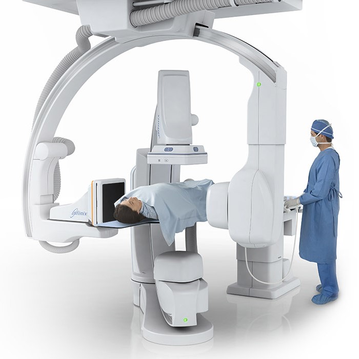 - Возможность изменять положение боковой С-дуги, сохраняя стабильность пациента, и повышая эффективность и безопасность процедуры.