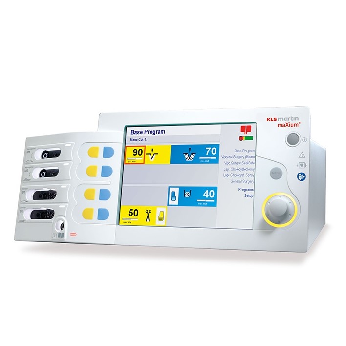 - Конструкция модели имеет четыре выхода, что дает возможность одновременно подключать к устройству до пяти разных инструментов и аппаратов. Кроме того, благодаря конструкции устройства два хирурга могут работать на различных операционных полях одновременно в монополярном режиме.