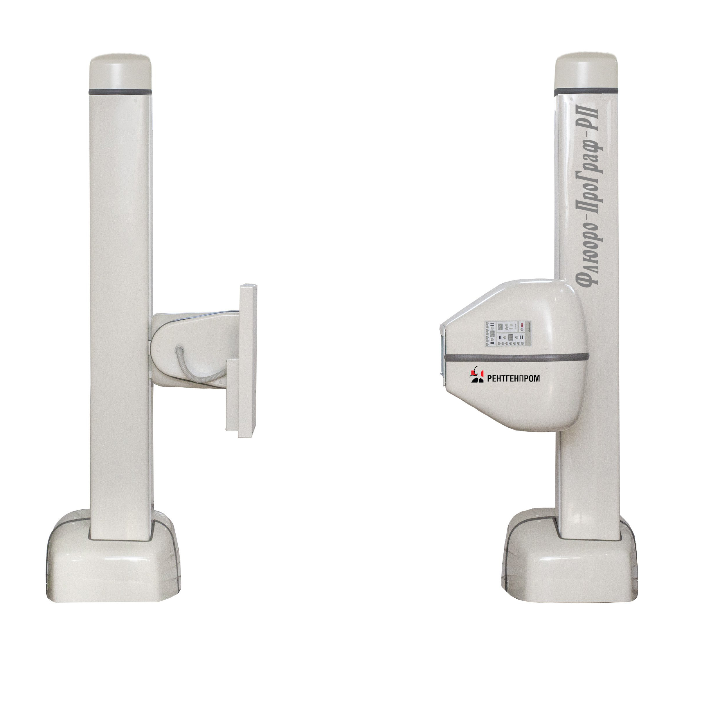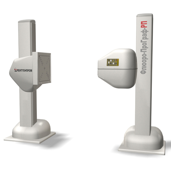 — Флюоро-ПроГраф-РП предназначен для проведения флюорографического обследования органов грудной клетки пациента в прямой и боковой проекциях в положении стоя и обеспечивает цифровую регистрацию изображения. В двухштативном исполнении возможна съемка в косых проекциях и латеропозиции.