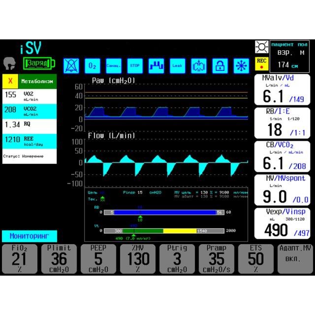- Максимальное давление на вдохе, давление плато, среднее давление, ПДКВ, автоПДКВ