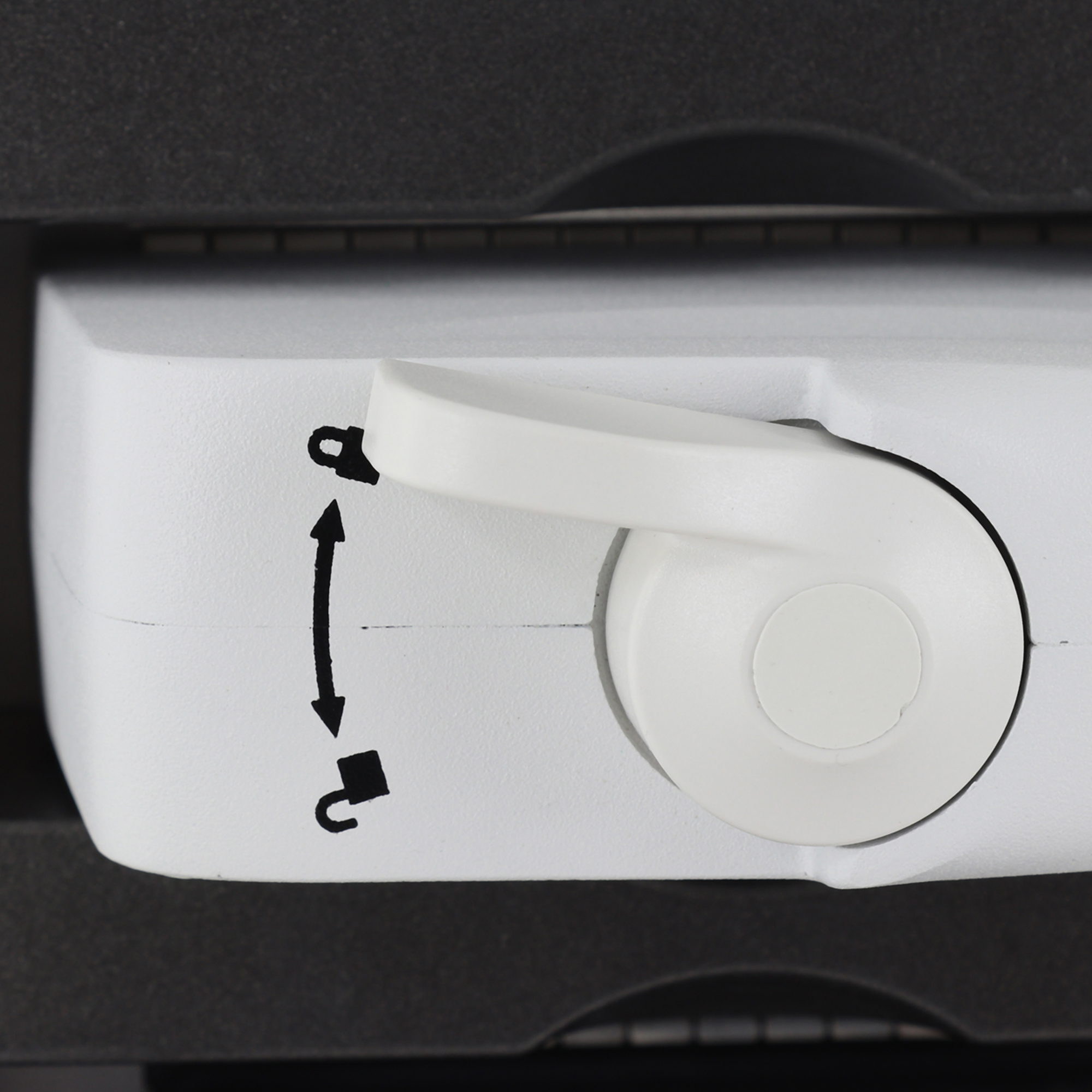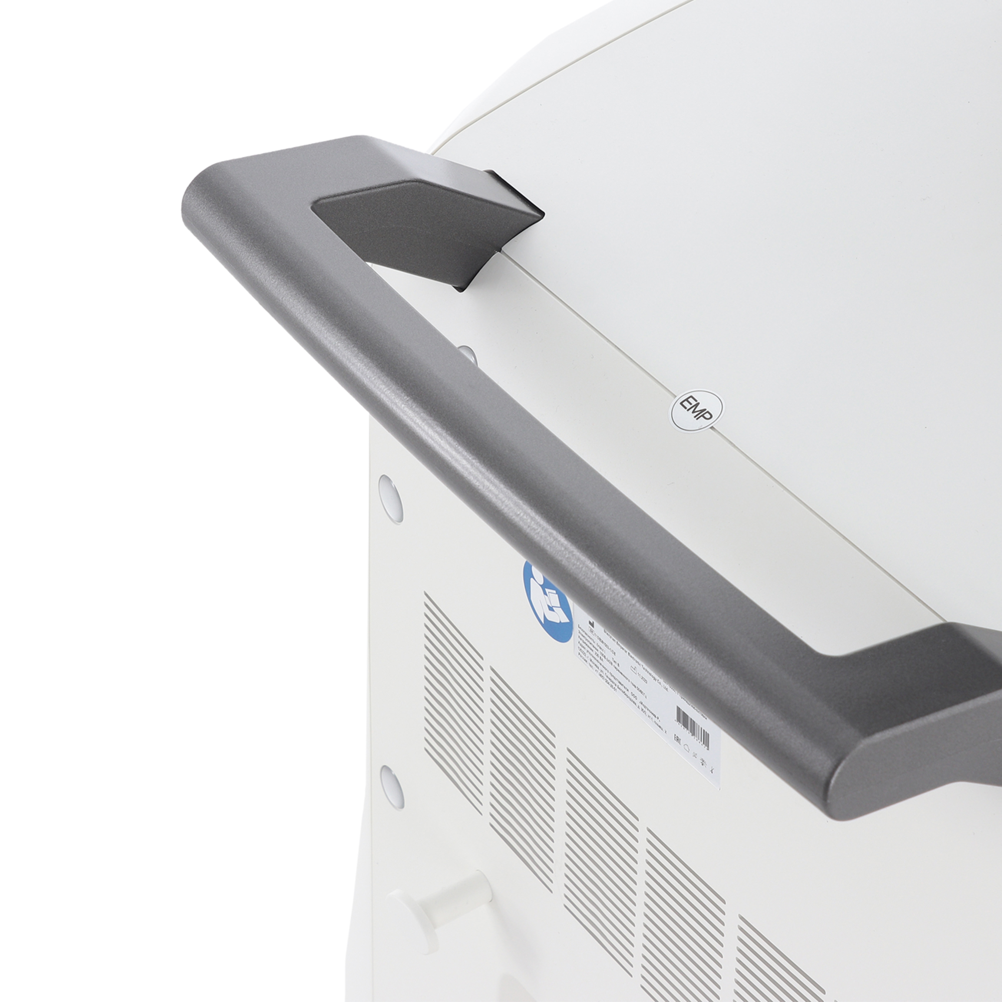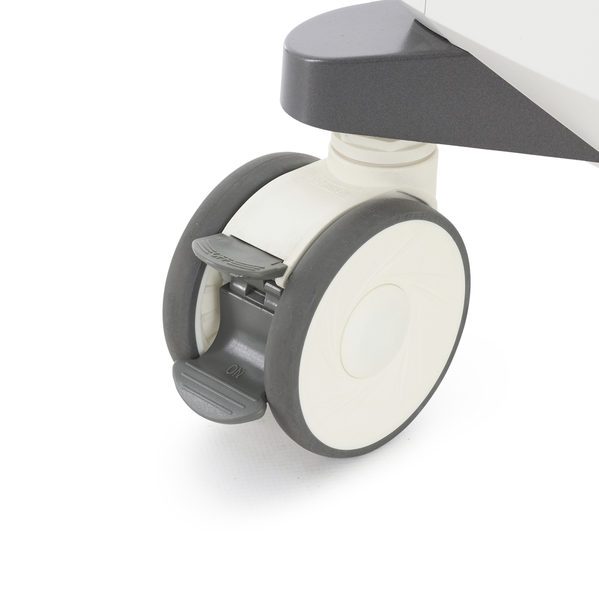 - Установлен на передвижную тележку с четырьмя поворотными колёсами (360°) и индивидуальными тормозами;