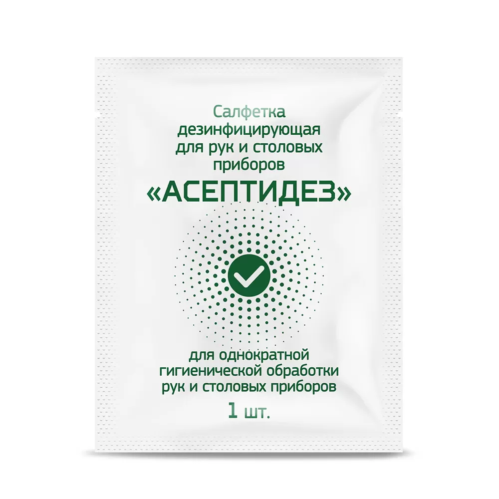 Салфетка влажная дезинфицирующая для однократной гигиенической обработки рук, для обработки столовой посуды, столовых приборов перед приемом пищи