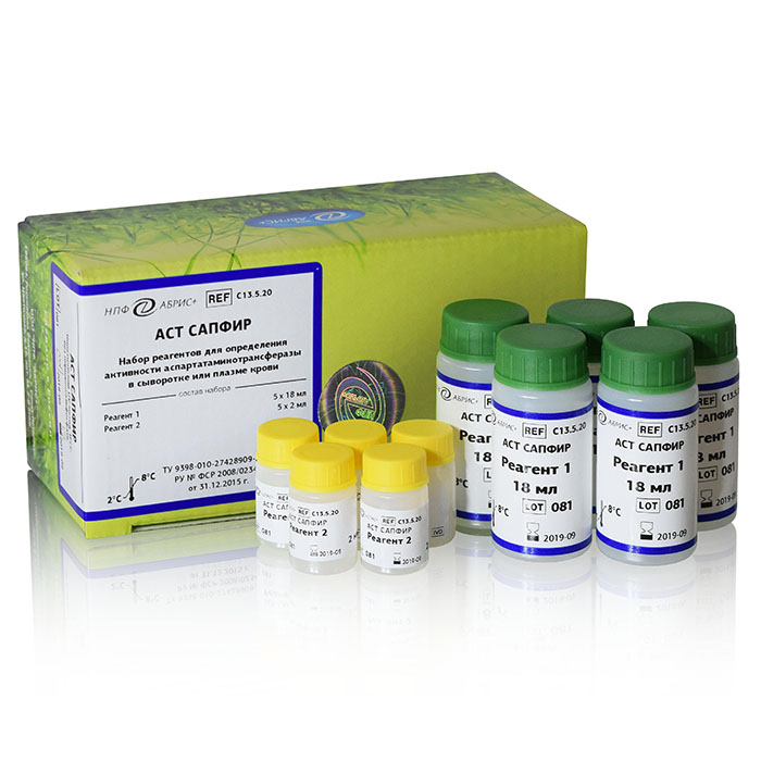 Набор реагентов для определения активности аспартатаминотрансферазы в сыворотке или плазме крови кинетическим методом.
