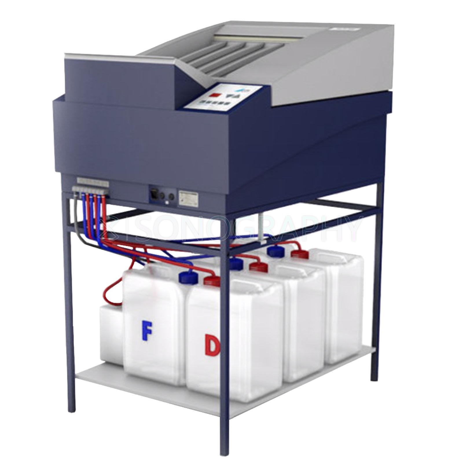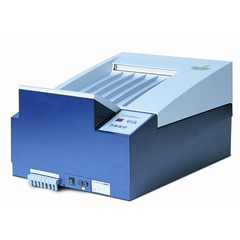 С помощью простого в управлении микропроцессора, обработка может быть настроена на различные типы пленок и химикаты. Возможность самостоятельно задавать время обработки снимка в сочетании с двумя программами обработки, заложенными в память машины, позволяет обрабатывать как стандартную, так и маммографическую пленку. На дисплее машины отображаются следующие параметры: температура проявителя, время обработки снимка, сообщения об ошибках. Удобная панель управления позволяет легко выбрать необходимую скорость обработки, температуру, норму пополнения химикатов. Конструкция и материалы транспортирующих роликов специально подобраны таким образом, чтобы снизить вероятность появления артефактов, возникающих при обработке пленок и улучшить качество изображения. После окончания обработки последней пленки процессор автоматически переходит в режим ожидания, что сокращает потребление энергии и износ оборудования.