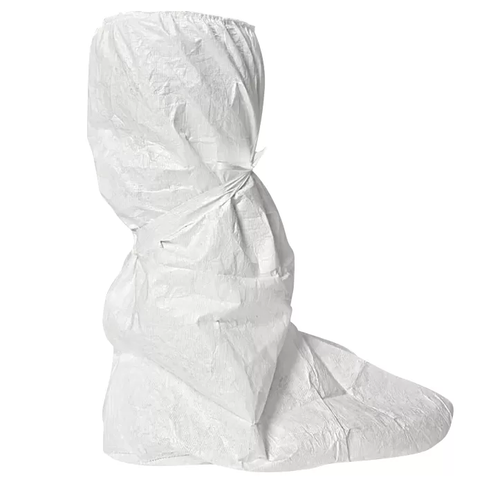 Высокие бахилы DuPont Тайвек модель POBA. Длина до колена. Цвет белый. Изготавливаются в одном размере. Эластичная вставка (верх), завязки. Внутренние швы прострочены. Противоскользящая подошва.