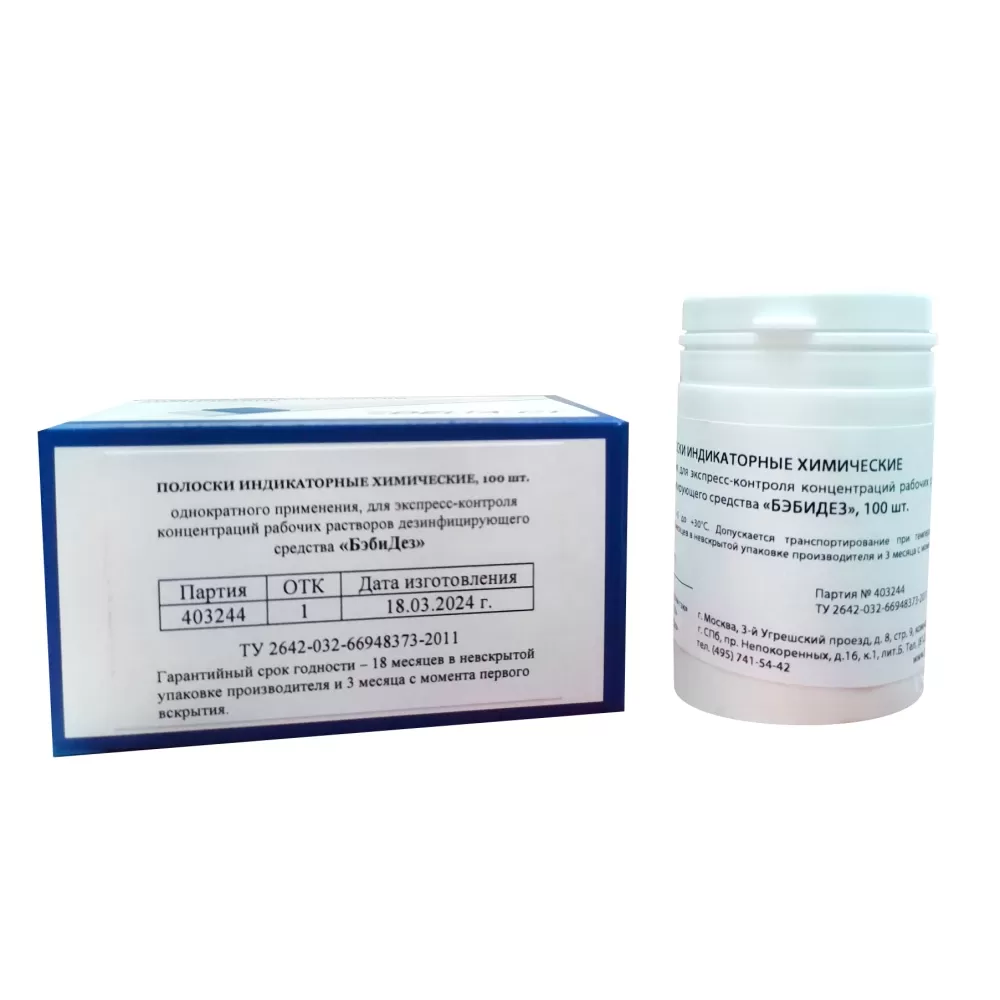 Индикаторные полоски предназначены для определения концентрации дезинфицирующего средства Бэбидез.