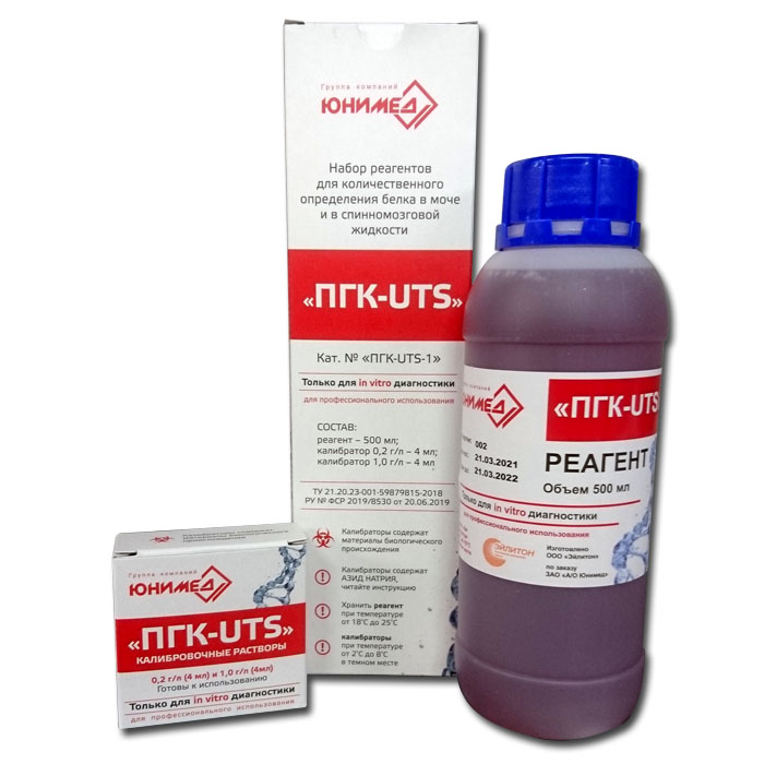 Набор реагентов для количественного определения белка в моче и в спинномозговой жидкости ПГК-UTS предназначен для количественного определения концентрации белка в моче и в спинномозговой жидкости человека.