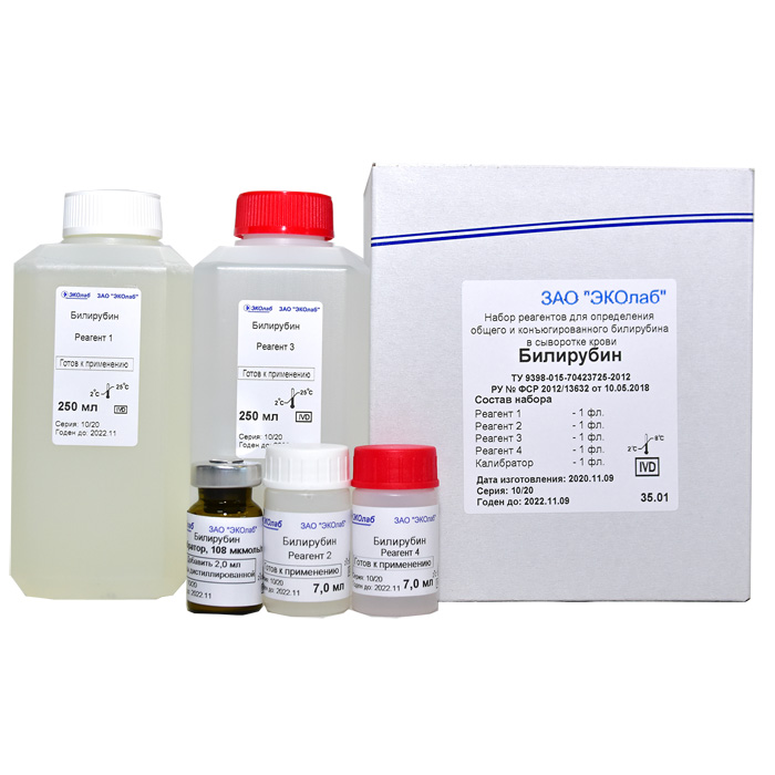 Набор реагентов Билирубин Эколаб предназначен для количественного определения содержания общего и конъюгированного билирубина в сыворотке крови унифицированным методом Ендрассика-Грофа.