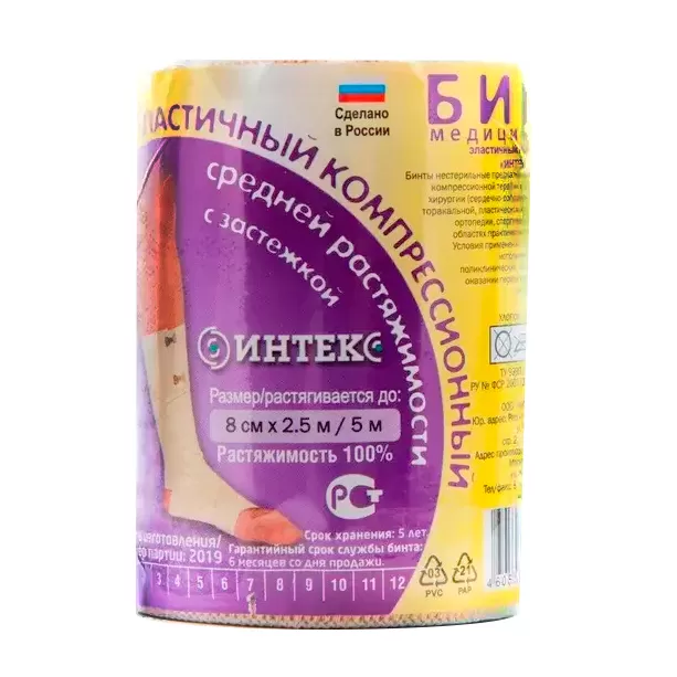 - Эластичные бинты "ИНТЕКС " средней растяжимости хорошо растягиваются, устойчивы к деформациям и многократному растяжению, не сползают и надежно фиксируются на теле с помощью застёжек.
