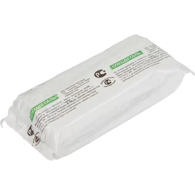 Фактическая плотность бинтов 450-550 г/м2 при нормальной плотности марли 24-25 г/м2, с применением высокопрочного гипса альфа-модификации, что обусловлено низкой водопотребностью не более 35%.