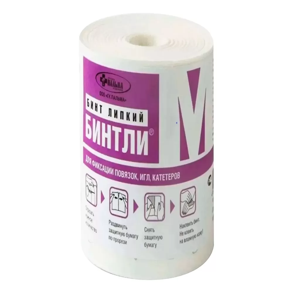 Липкий бинт БИНТЛИ – современный пластырь, предназначенный для закрытия послеоперационных ран, фиксации повязок, а также игл, катетеров, дренажных трубок и т.п.