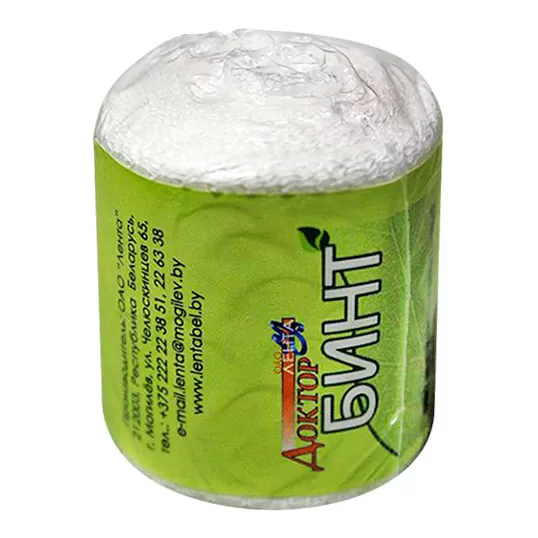 - Каждый рулон упакован в пленку из полимерного материала, обеспечивающую сохранность качества бинтов.