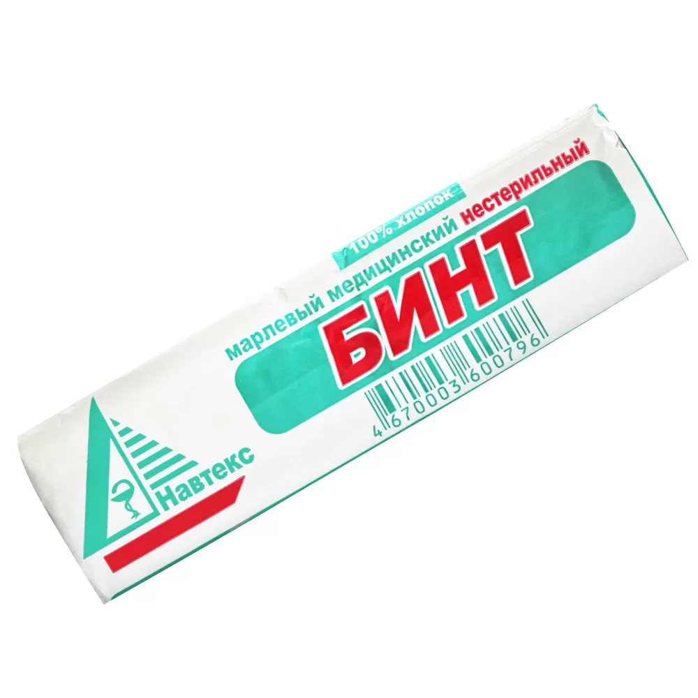 Нестерильный бинт из отбеленной хлопчатобумажной медицинской марли (100% хлопок).