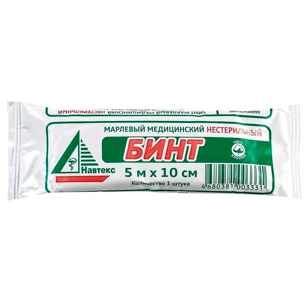 Нестерильный бинт из отбеленной хлопчатобумажной медицинской марли (100% хлопок).