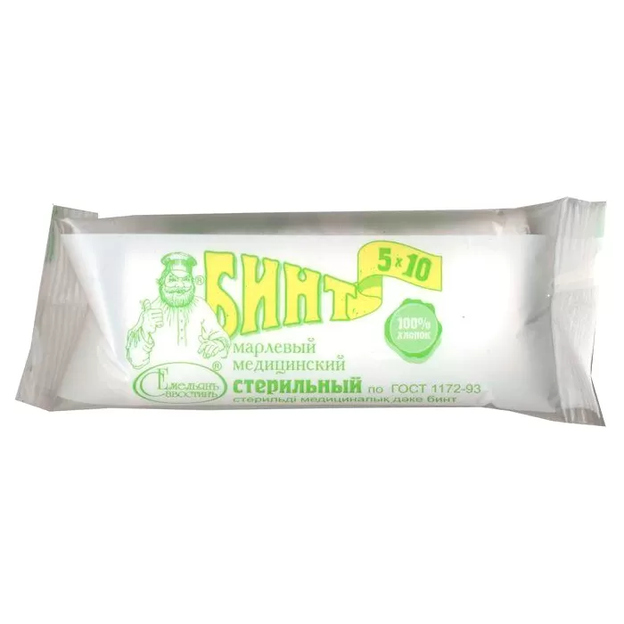 - Бинт из нетканого материала медицинский, с неосыпающимися краями, стерильный в индивидуальной упаковке.