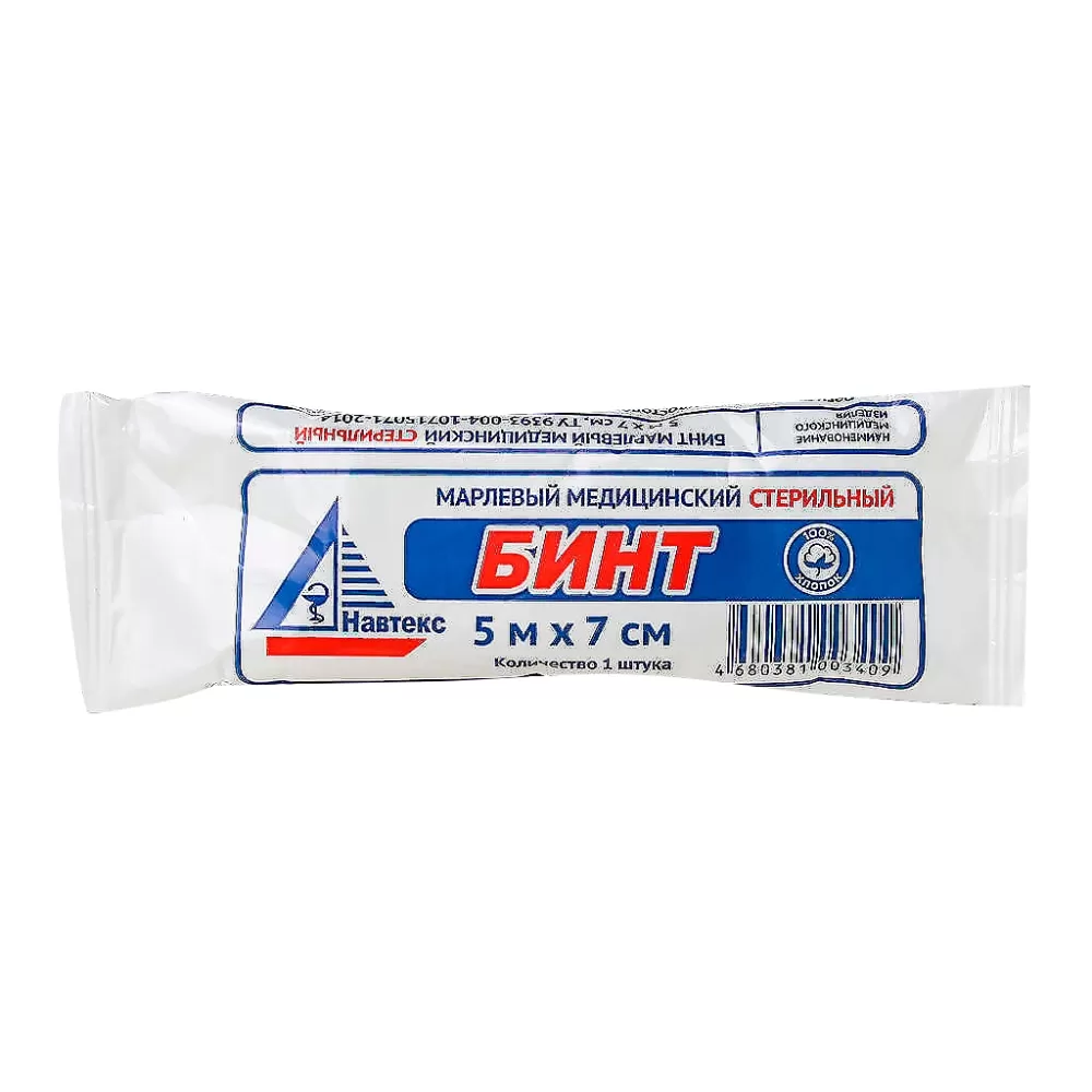 Нестерильный бинт из отбеленной хлопчатобумажной медицинской марли (100% хлопок).