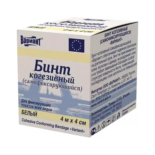 Бинты самофиксирующиеся (когезивные) 'ВАРИАНТ' предназначены для фиксации повязок.