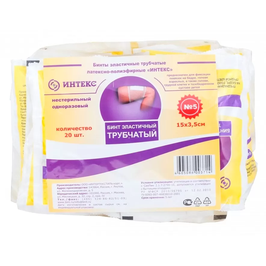 Бинт трубчатый эластичный медицинский Интекс №5 15х3,5 см латексно-полиэфирный 20 шт
