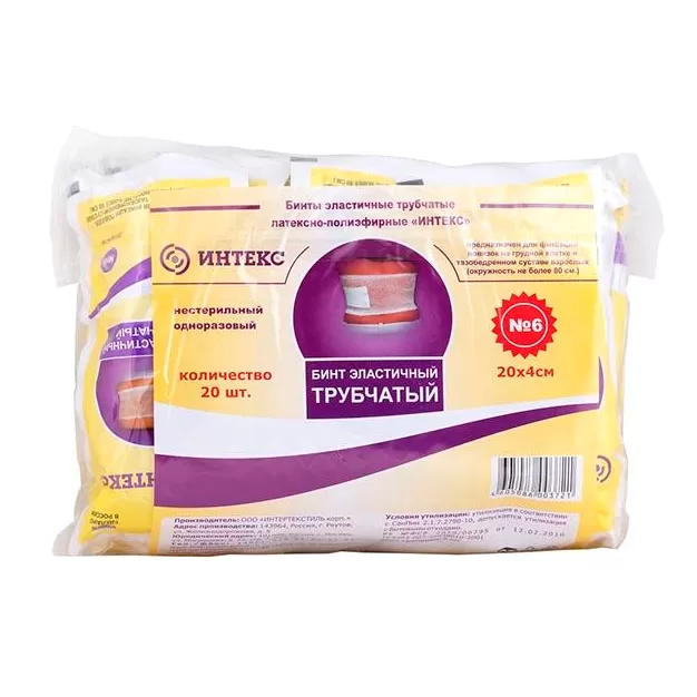 - Трубчатые бинты «Интекс» – это универсальное и практичное средство для фиксации повязок на теле. Они доступны в разных размерах, хорошо тянутся, прочны, сохраняют свои свойства и легко наносятся на тело.