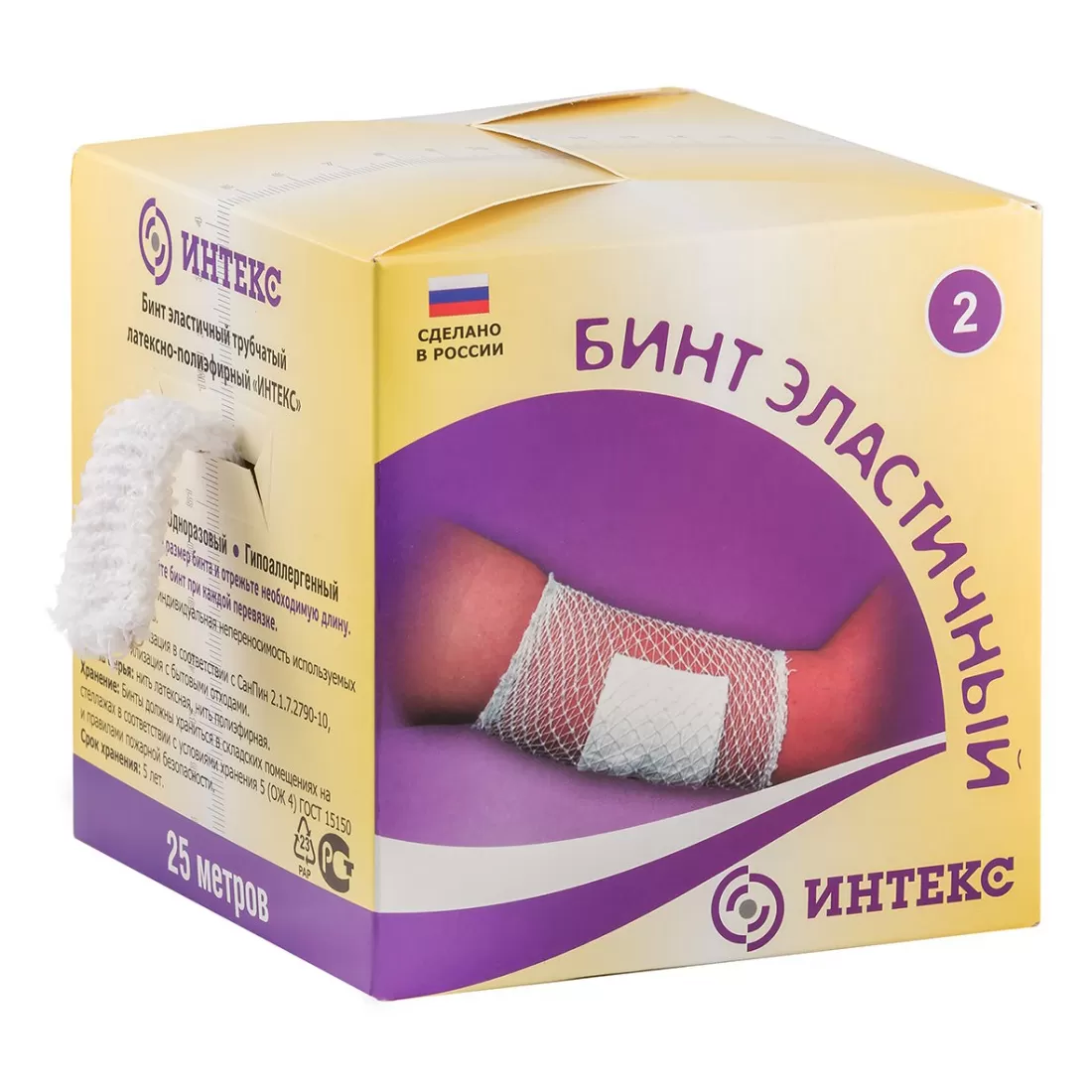 - Бинты обладают хорошим воздухообменом, прочные, сохраняют свои эластические свойства после стирки и не распускаются после надрезания. Применяя трубчатые бинты «ИНТЕКС» можно сэкономить перевязочный материал и выиграть время на наложении повязок для фиксации.