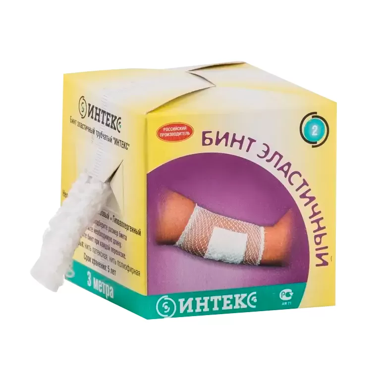 - Бинты обладают хорошим воздухообменом, прочные, сохраняют свои эластические свойства после стирки и не распускаются после надрезания. Применяя трубчатые бинты «ИНТЕКС» можно сэкономить перевязочный материал и выиграть время на наложении повязок для фиксации.