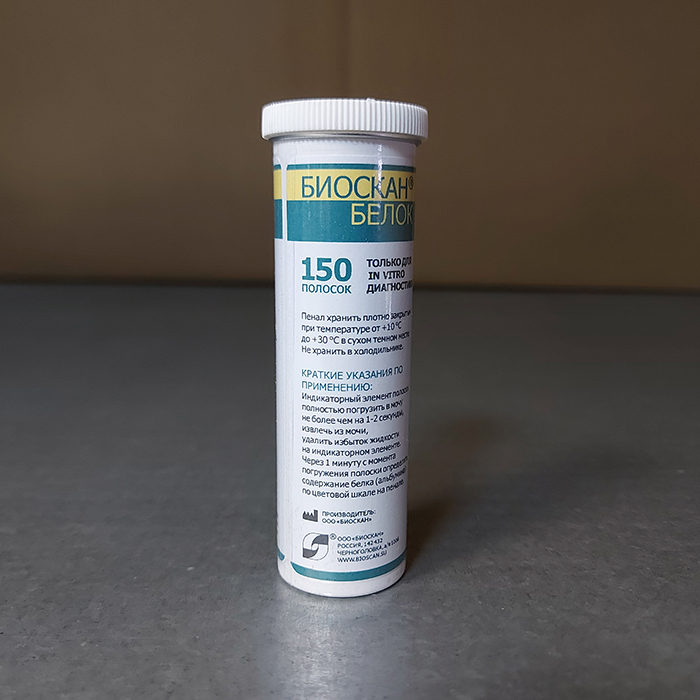 Полоски индикаторные БИОСКАН-БЕЛОК предназначены для визуального (по цветовой шкале) экспресс-анализа содержания белка (альбумина) в моче человека. Полоски могут быть использованы для определения протеинурии (выделения белка с мочой) при массовых обследованиях здоровья населения, при обычных анализах мочи в клиниках и поликлиниках.
