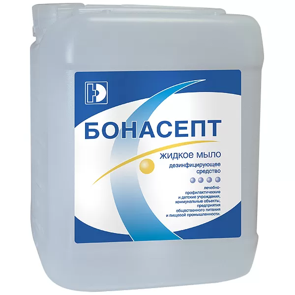 Дезинфицирующее средство "Бонасепт" представляет собой жидкое мыло с антибактериальным эффектом в виде однородной бесцветной или окрашенной в голубой цвет жидкости без запаха или с запахом отдушки, готовый к применению.