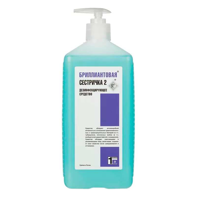 Дезинфицирующее средство «Бриллиантовая сестричка 2» представляет собой вязкую однородную жидкость, от голубого до синего цвета без запаха или с запахом применяемой отдушки.