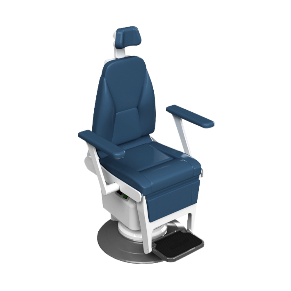 Одним из важных факторов удобства при осмотре пациента в работе врача отоларинголога является удобное и современное кресло, обладающее спектром регулировок. Представленный вариант имеет фиксированные подлокотники и ручную регулировку подголовника в двух положениях.