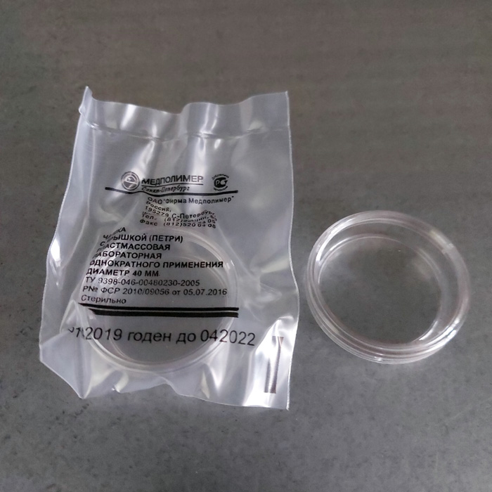 Чашки Петри 40 мм стерильные односекционные предназначены для посева исследуемого материала на питательные среды для выделения чистых культур микроорганизмов, изучения свойств культур, их чувствительности и резистентности к антибиотикам при микробиологических исследованиях. Чашка невентилируемая