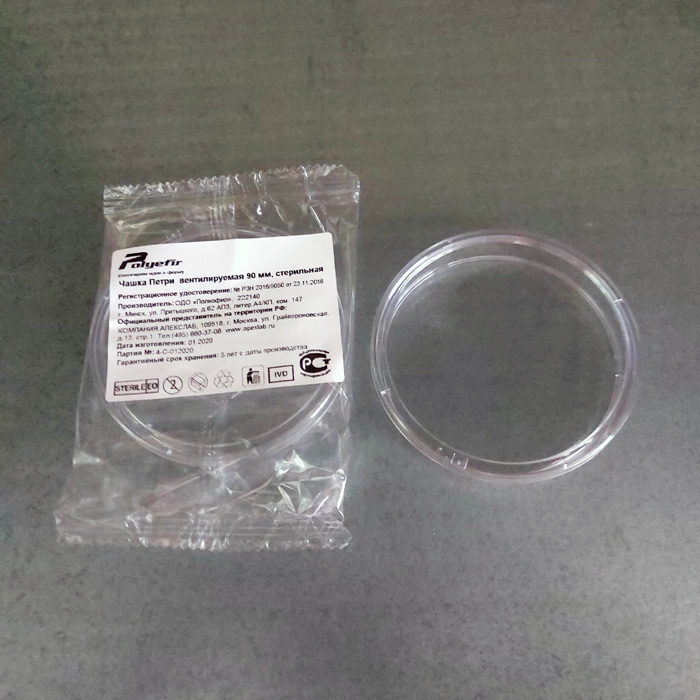 Чашки Петри 90 мм стерильные односекционные предназначены для посева исследуемого материала на питательные среды для выделения чистых культур микроорганизмов, изучения свойств культур, их чувствительности и резистентности к антибиотикам при микробиологических исследованиях. На крышке расположены несколько вентиляционных опор, предотвращающие плотное прилегание крышки к чашке и обеспечивающие доступ воздуха.