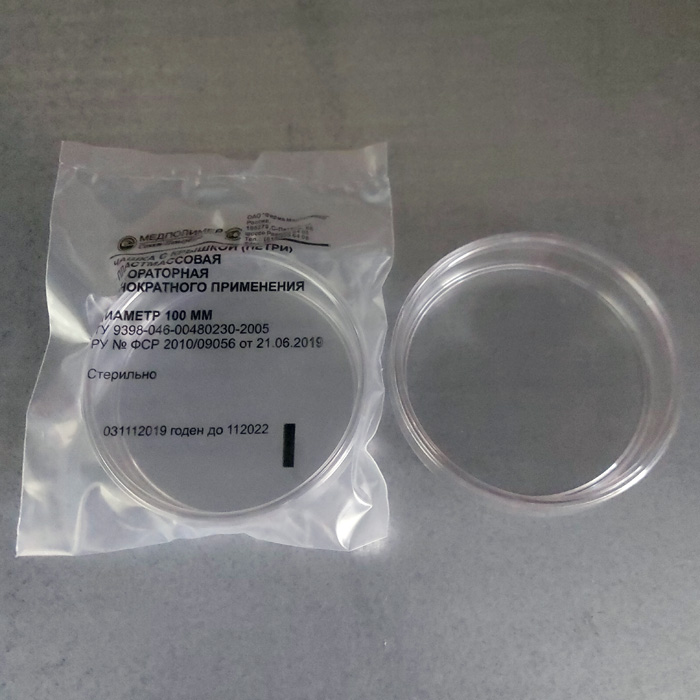 Чашки Петри 100 мм стерильные односекционные предназначены для посева исследуемого материала на питательные среды для выделения чистых культур микроорганизмов, изучения свойств культур, их чувствительности и резистентности к антибиотикам при микробиологических исследованиях. Чашка невентилируемая