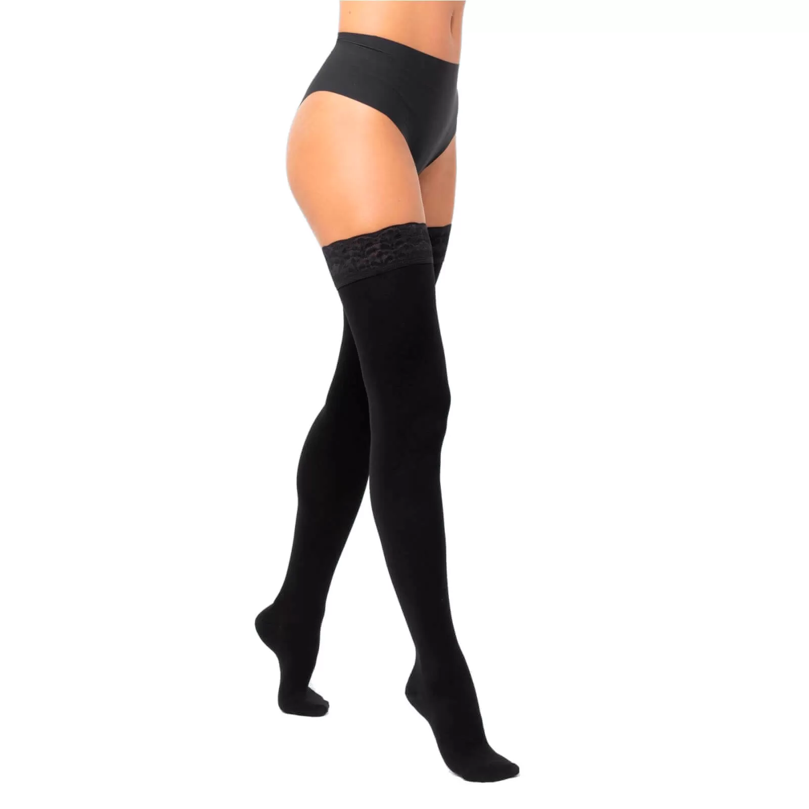 Чулки Интекс для широкого бедра с ажурной силиконовой резинкой. Компрессионные чулки Интекс 2 степени компрессии используются для профилактики и лечения хронических заболеваний венозного аппарата, в том числе при поражении всей нижней конечности (варикозно расширенные вены). Противоварикозные чулки с увеличенной длиной окружности бедра специально предназначены для покупателей с широким бедром или наличием избытка массы тела. Чулки 2 компрессии от варикоза создают давление 23-32 мм. рт. ст., которое максимально на щиколотках и уменьшается в области голени и бедра. Это позволяет увеличить скорость движения венозной крови, обеспечивая хорошую терапевтическую эффективность.