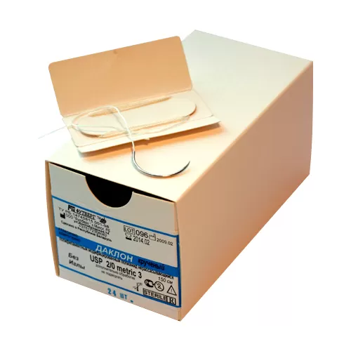 Синтетический стерильный нерассасывающийся шовный материал из полипропилена.
