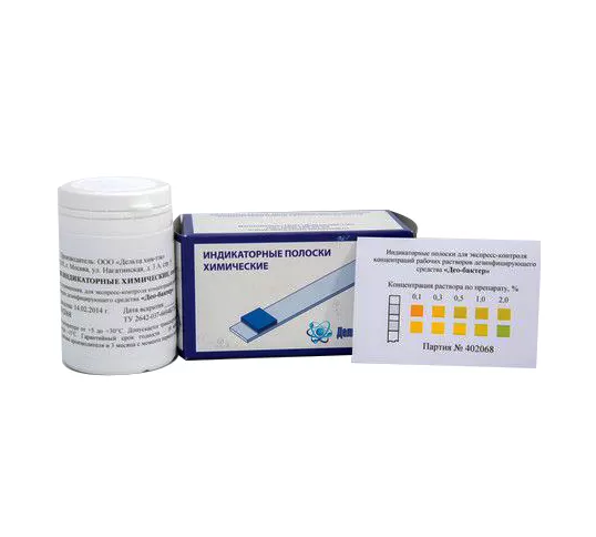 Полоски индикаторные для определения концентрация действующего вещества или препарата в рабочих растворах дезинфицирующих средств.