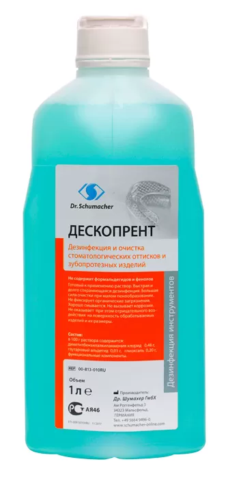 - Оттиски из альгинатных, силиконовых материалов, полиэфирной смолы, альгинатов, гидроколлоидов, зубопротезные заготовки из металлов, керамики, пластмасс и других материалов (с соблюдением противоэпидемических мер - резиновых перчаток, фартука) дезинфицируют путем погружения их в средство с экспозицией 10 минут без предварительного ополаскивания проточной водой.