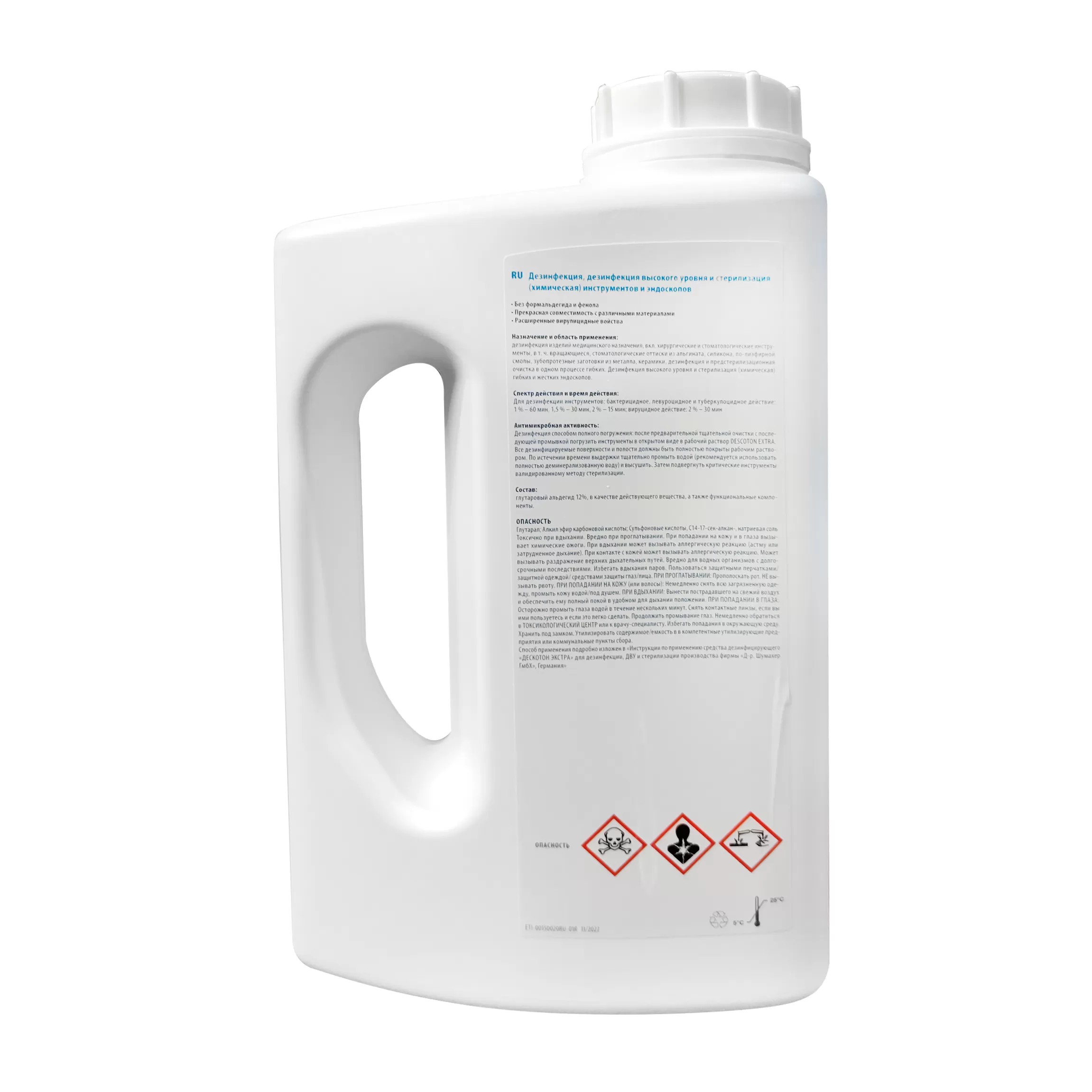 - в качестве действующего вещества содержит глутаровый альдегид - 12%, а также функциональные компоненты.