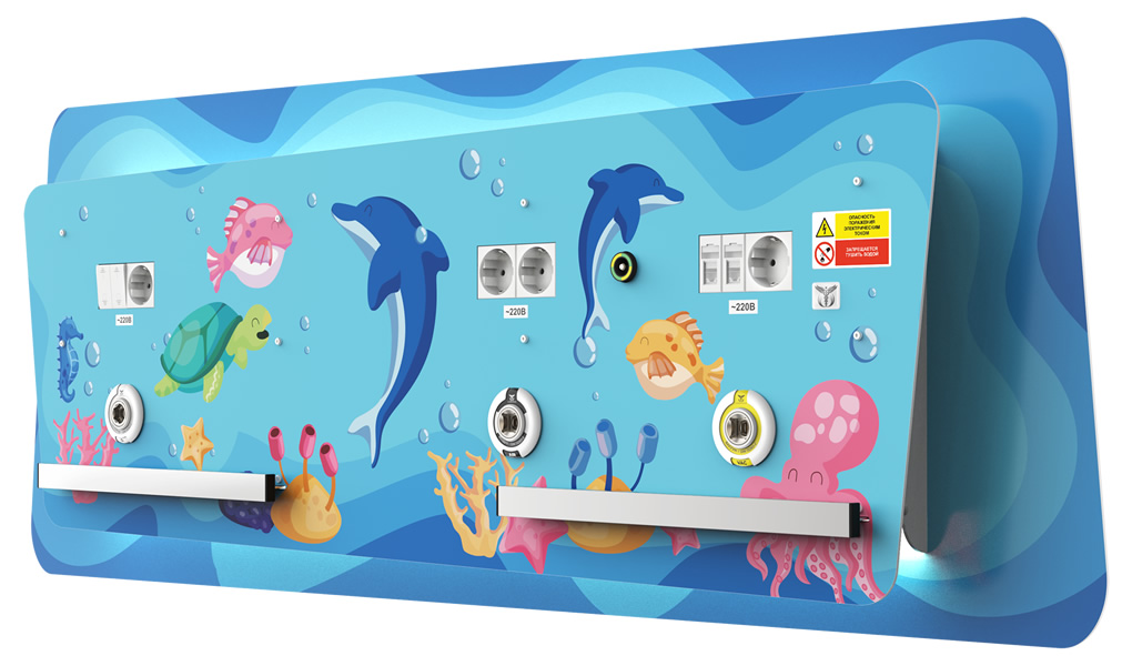 Данные системы жизнеобеспечения могут оснащаться разъемами AGSS для отвода анестезиологических газов и разъема AIR-Motor для подачи сжатого воздуха, обеспечивающего работу пневмоинструмента. Корпус консоли выполнен с использованием дизайнерских элементов с детскими мотивами, а внутренние элементы системы изолированы и защищены от прямого контакта, что обеспечивает безопасность использования данного оборудования. Консоль изготавливается из алюминия с полиэстеровым порошковым покрытием, что облегчает обработку дезинфицирующими составами.
