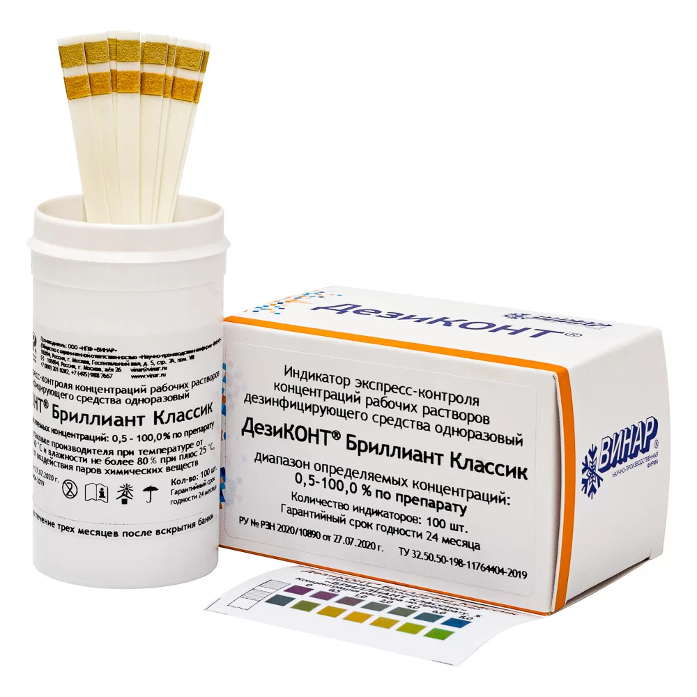 - Индикаторы предназначены исключительно для определенного дез.раствора, в данном случае для раствора дезинфицирующего средства Бриллиант Классик.